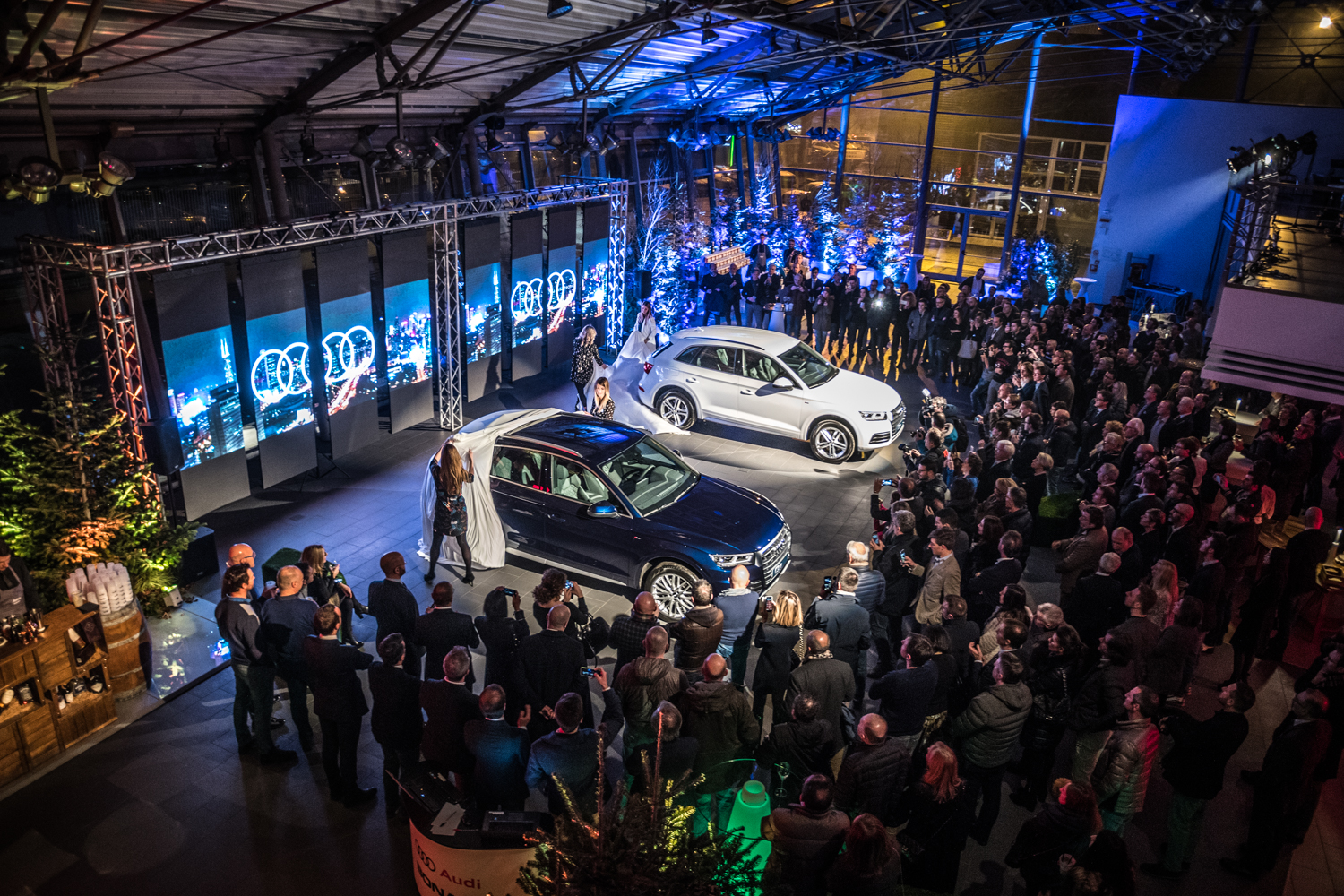 All’Audi hangar di Bonaldi Bergamo sono state svelate le due nuove arrivate in casa Audi, con la Q5 che sarà la novità di punta del 2017 firmato dai quattro anelli. In un ambiente che imitava le montagne con conifere innevate o un bosco ricco di verde si trovavano le due Q5, quasi a ribadire la versatilità di questo modello che grazie alla trazione “quattro”, si trova a suo agio su diversi terreni.