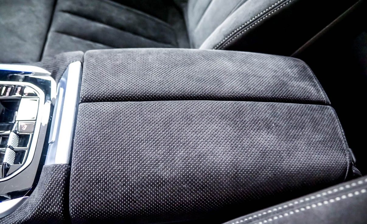 Non da ultimo ho visto anche un nuovo trattamento di Alcantara® sulla parte centrale dei sedili e su tutto il bracciolo centrale in versione traforata con retro grigio chiaro.