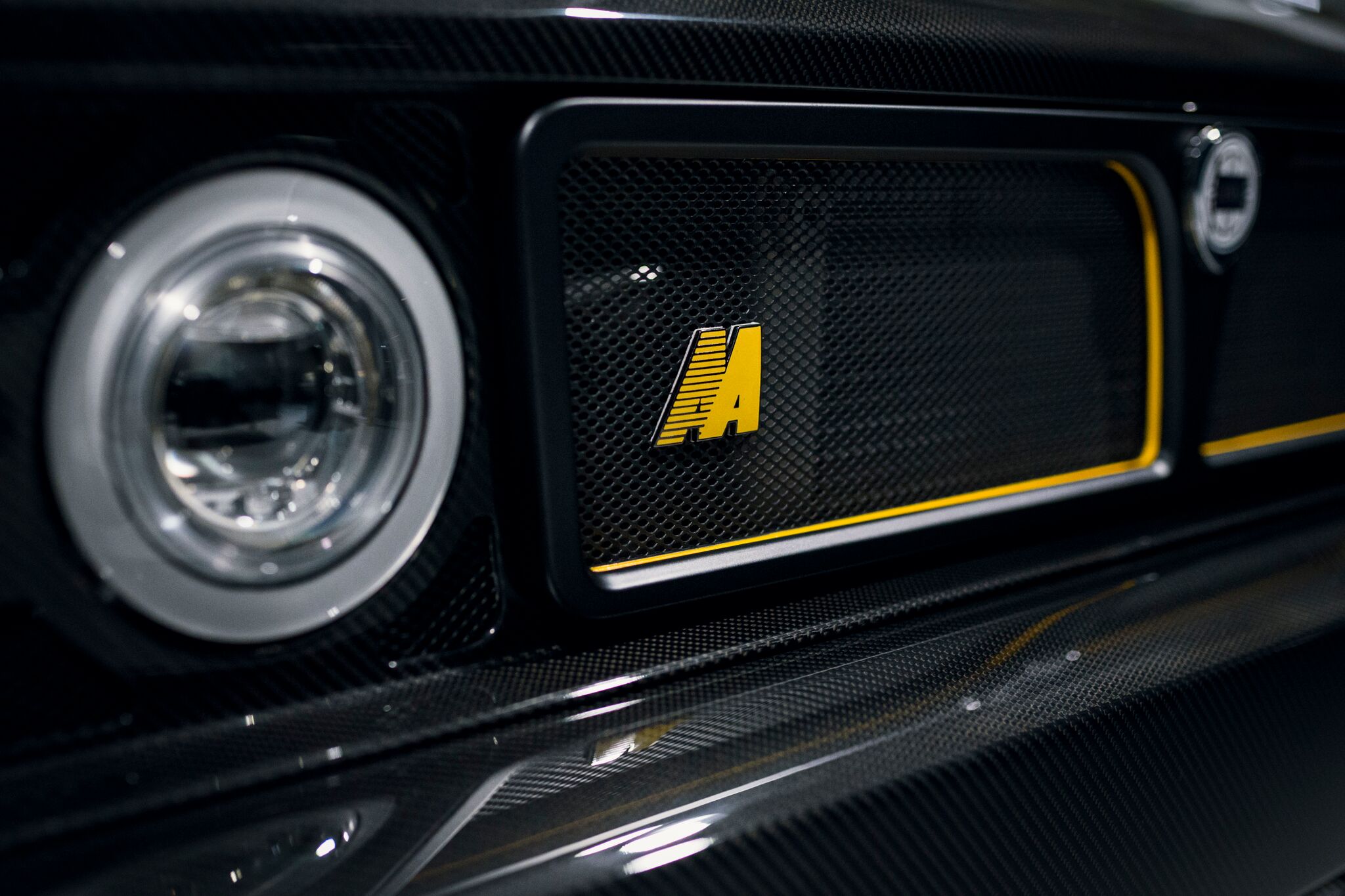 mantenendone i tratti distintivi, Amos ne ha ricreato a mano tetto e fianchi dalle linee più tese, interamente in alluminio, eliminando le porte posteriori dando all’auto un aspetto ancora più aggressivo. Ad impreziosire le incredibili fattezze sono stati messi cofano (o “cofango” come lo definiscono in casa perché integrante i parafanghi anteriori), copertura motore, paraurti e spoiler posteriore in fibra di carbonio.