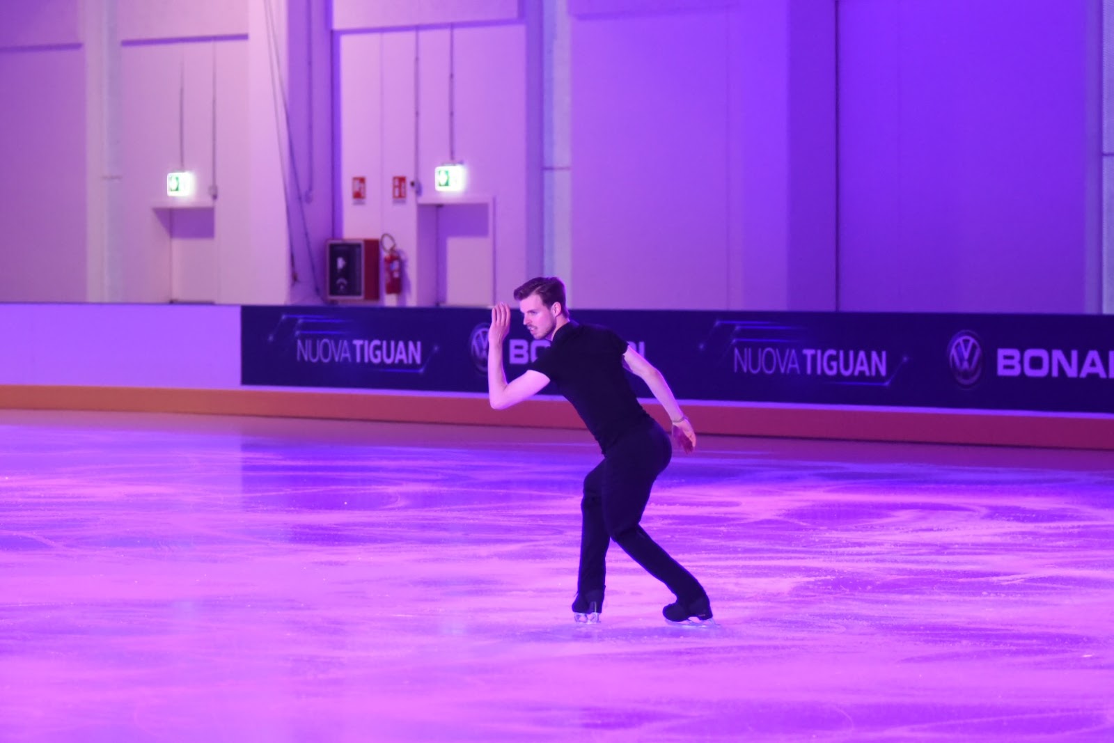 Di seguito alcune foto degli atleti che si sono esibiti e un simpatico aneddoto: mi trovavo alla stazione dei treni dopo una lunga giornata in viaggio pronto per andare all’evento on ice, quando una gentile signora mi chiede indicazioni per il nuovo pattinaggio. Mi offro di accompagnarla e mi dice “stai andando a fare l’esibizione? sei un pattinatore?”. Rido e dico “signora se la facessi io finirei la presentazione al pronto soccorso senza un osso intatto”!