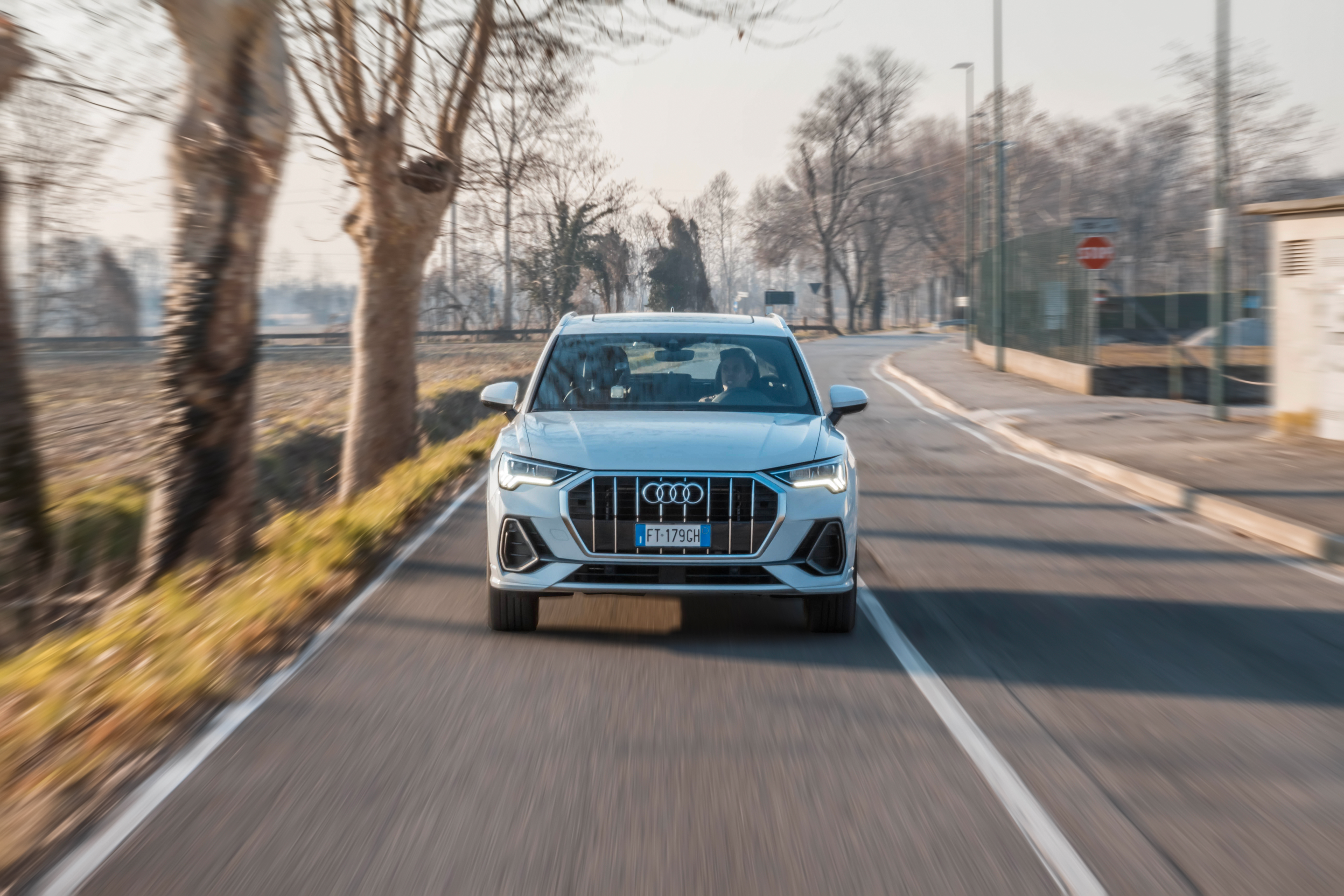 L’Audi Q3 in città stupisce per come digerisce pavé, tombini e buche, per la visibilità, abbastanza buona e per l’accoppiata motore cambio.